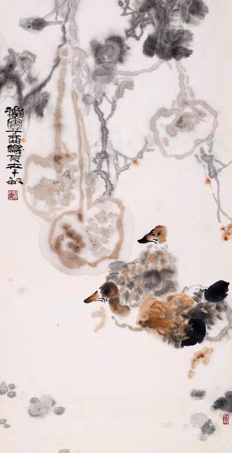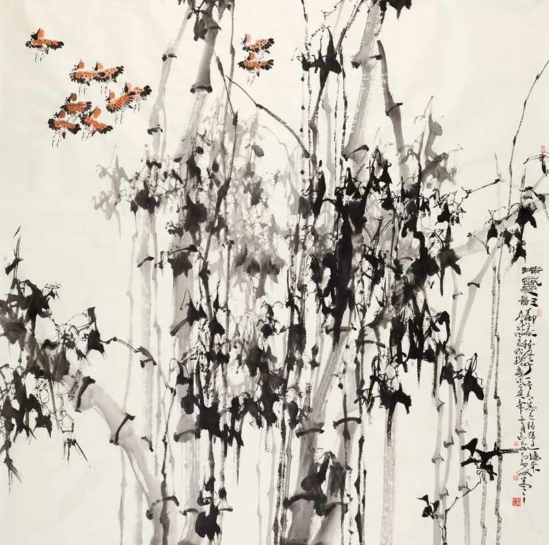 中国文化讲求大智若愚、大巧若拙,这是中国文化在世界文化中独树一帜的特点。艺近于道,艺术家创作艺术品想要达到什么结果这一直是我深思的问题。我觉得画家创作大写意花鸟画是禅悟的结晶,禅是不立文字,只在那似与不似之间,靠的是禅境中的体验从而达到顿悟。最终成熟发露出的意境,感动自己同时感染观者。