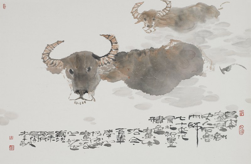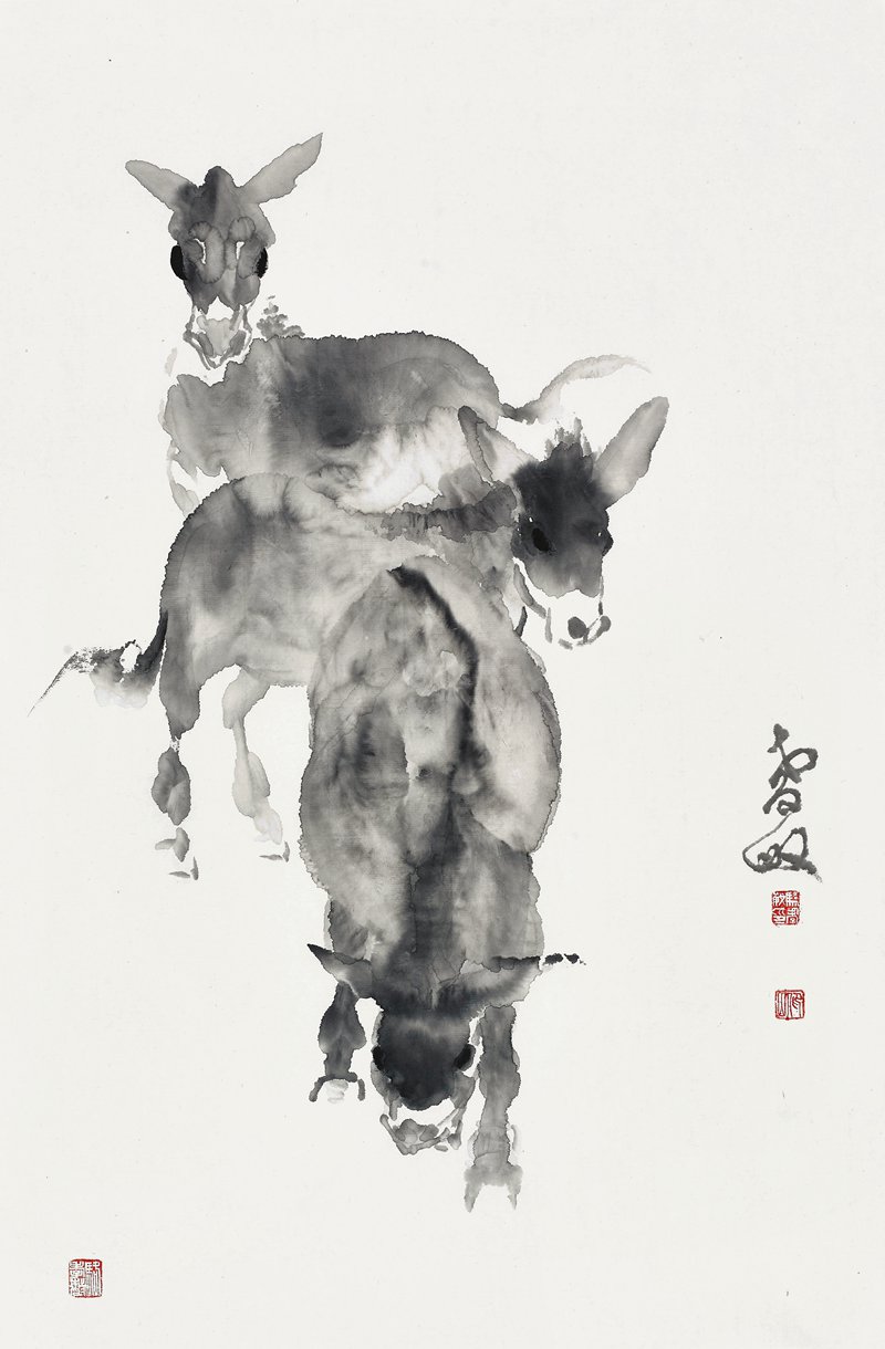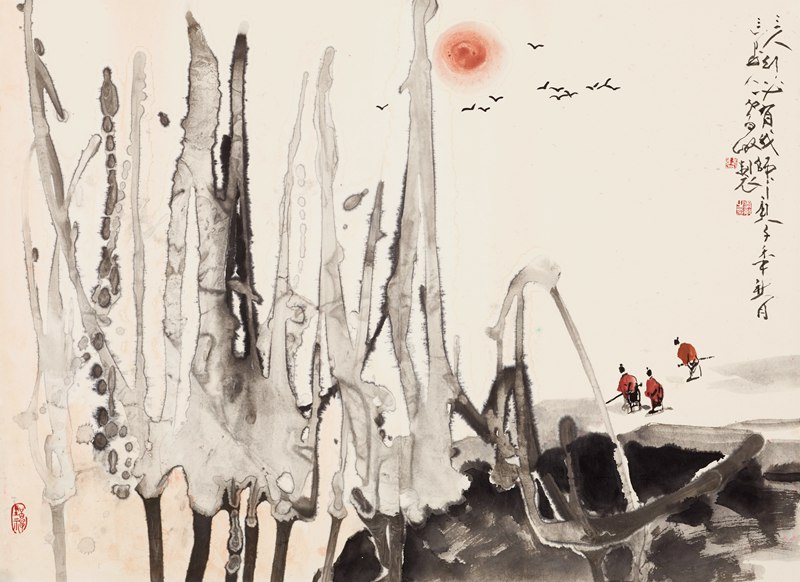 绘画作品的载体为什么是用笔墨呢?纯美术话题是很高级的禅境,进入不到此地,你即使画了万米长卷,抽象的符号语言创造的世界也与你相隔千里。中国国画历来讲求笔墨,画家依靠岁久功深的修练以达自身感觉潜能的开拓,作品格调的高低以此论。骆孝敏即深得禅意者,文学性被他所消解,造型准确严谨却绝不逼真,犹如他性格中潇散的作风,一切又都在感觉之中,一切又都超乎其外,一种写意性的生活观念和思维方式。
