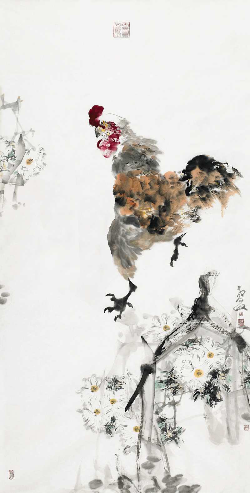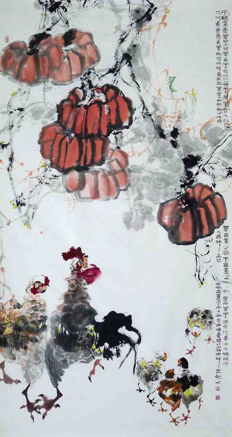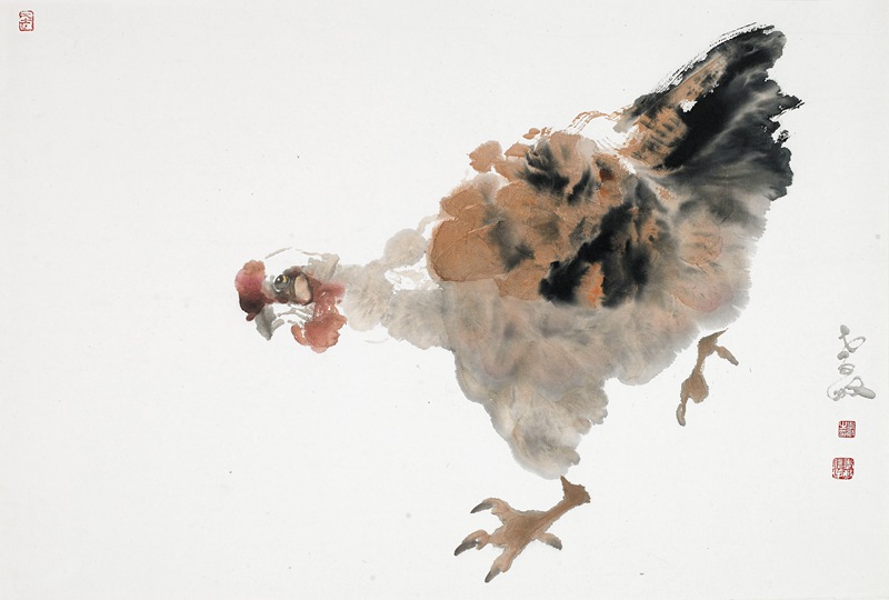 孝敏的画大家都很熟悉,他生活在长安,他更贴近生活。对我的印象,他画了很多村舍的鸡,各种动作都表现的很生动的,这就是说明艺术一定来源于生活。他对生活的那种热情,那种感情,就是像一般的农民一样对家里养得鸡、种的庄稼很有感情。有了生活,你才能用自己的绘画去打动别人。