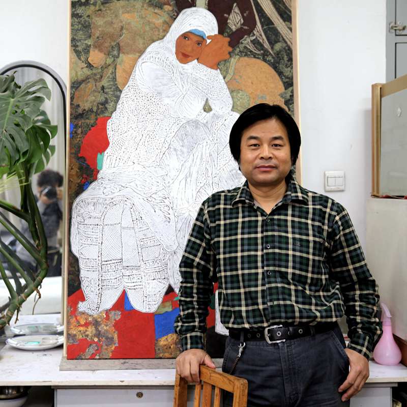 一个人的一生能有几个十年,他在西安生长18年,却在新疆戈壁滩画画30余年。他像大漠里的骆驼一样,常年背着画夹,在新疆龟兹地区1万多平方公里戈壁滩散布的500多个石窟壁画之间,来回游走。他用20余载临摹修复濒临失传的龟兹壁画,出版了宝贵的具有史料价值的《曹永军·龟兹壁画临摹集》。他从传统临摹中走了出来,用古典艺术精髓的技法和对生活历练的储备,形成了自己的创作特色与个性。