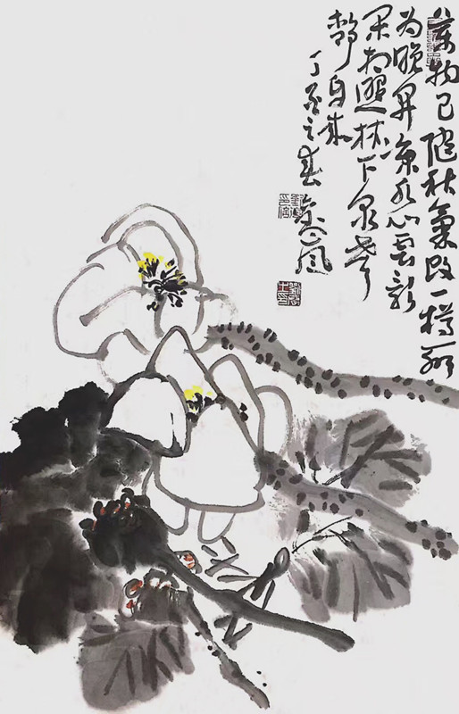 刘岚作画,似乎从来不做中规中矩的描画,或者,是他不屑于照搬那静止不动的死寂之相。所有出现在他笔下的物,皆被他解剖过,或被除去了衣蚀,或被剥除了皮毛,总之,剔除了一切虚浮之相,而立体呈现出鲜活的生命本质。他的眼光犀利,笔端透着一股狠劲儿,仿佛必得画出物的本来真相,必得描出相的精神内核,方才甘心似的。连他画中的两根青葱三朵白蒜,也仿若思想者,携着自己的精神而立。跟着他的笔墨丹青,你的眼便也似乎具有了穿透力,直接看到了物相的内心世界。