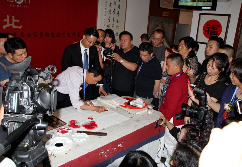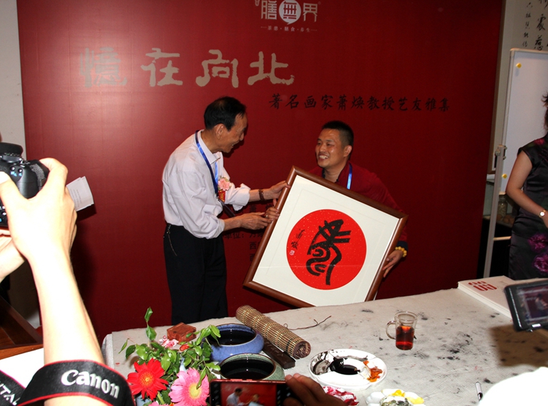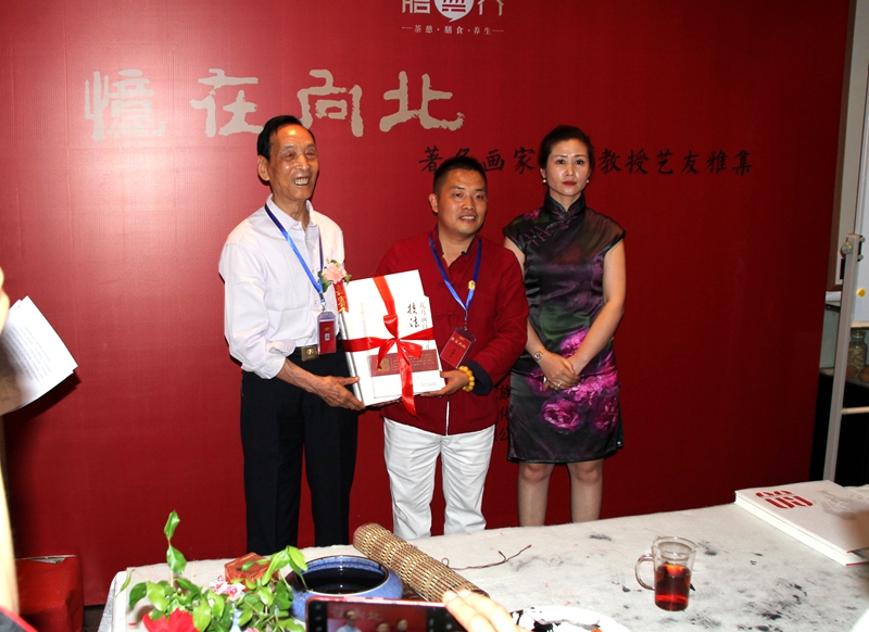 本网讯 5月26日,由萧焕艺术馆主办,陕西九延堂彭祖餐饮管理有限公司承办,陕西彭祖文化研究院,西安五星印刷有限公司、西安善客思企业文化传播有限公司协办的“忆在向北”——著名画家萧焕教授艺友雅集在西安市龙首原膳無界·彭祖食疗馆顺利举办,萧焕艺术馆馆长李雅悦,陕西彭祖文化研究院主任彭君权,西安五星印刷有限公司总经理惠广宁,西安善客思企业文化传播有限公司总经理李长根以及萧焕教授的学生、新闻媒体等百余人参加活动。