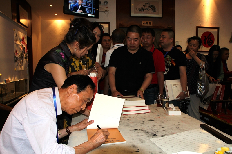 本次活动为满足艺友的需求,萧焕教授现场签售《花鸟画白描写生技法》和《萧焕从艺60年国画作品集》等书籍上百余册,并为“膳無界”彭祖食疗舘赠送书籍和“福”字书法作品,“膳無界”彭祖食疗舘负责人彭君权表示书籍将长期展示,让喜欢艺术的宾客免费阅读。