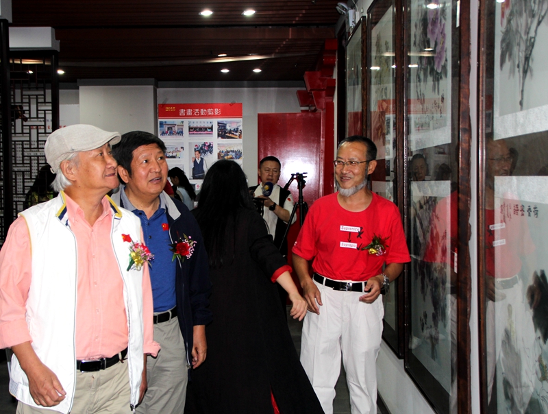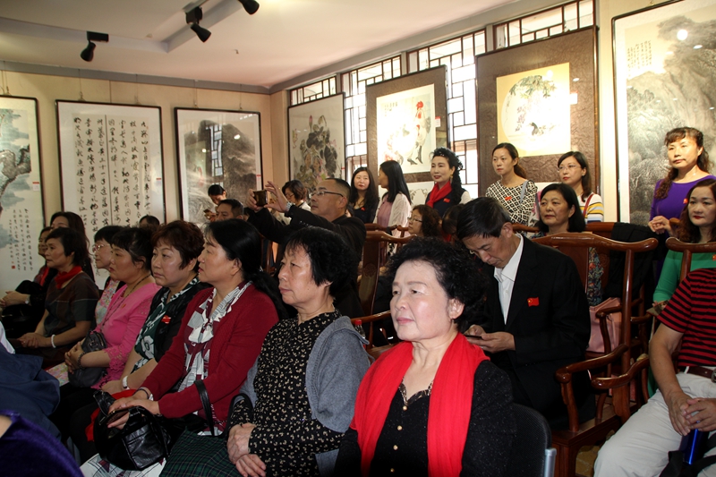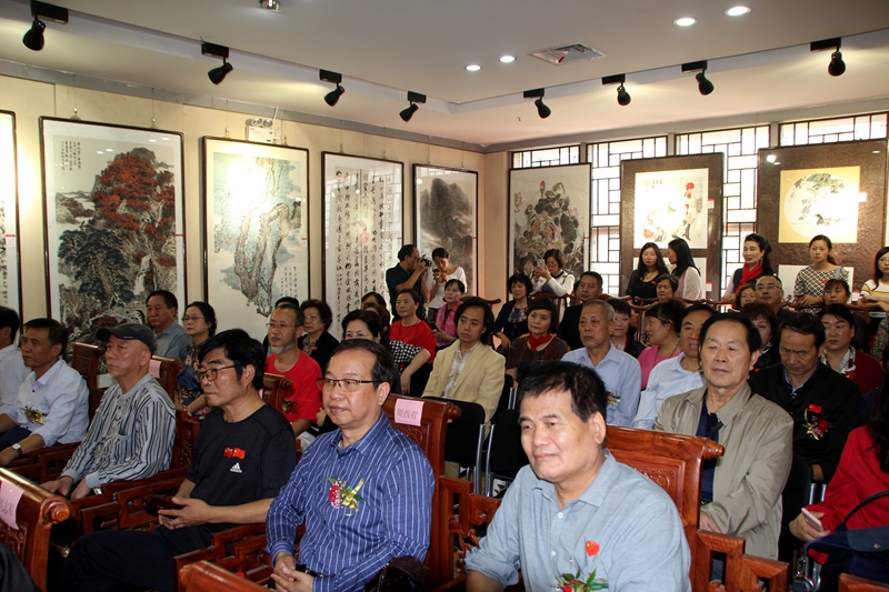 参加本次展览开幕式的嘉宾有:陕西省委原常委、纪委书记,陕西长安书画研究院顾问李焕政,陕西长安书画研究院院长萧焕,荣民控股集团党委书记、副总裁畅东荣,荣民控股集团高级顾问卓九成、集团办公室主任王远;陕西长安书画研究院名誉院长张三友、叶炳喜、胡西铭、蔡嘉励等,还有顾问李保祥、刘志军,常务副院长崔宝堂、副院长杜耀志、李艳秋、杨永进、潘文安、王广香、惠世平、周西省、冀进联、王金如、王振东等;陕西长安书画研究院秘书长李宗林,新闻中心主任赵刚,商洛分院院长史俊峰,鄠邑分院院长王宗元,中国唐苑写生基地主任蔡喜萍,镇安写生基地主任郭正明,秦北写生教学基地主任王利敏,渭北分院法人代表白剑波,以及陕西长安书画研究院全体院士、研究员,萧焕中国画高研班学员等100余人。常务副院长崔宝堂介绍展览筹备情况,副院长杜耀志主持了开幕式。