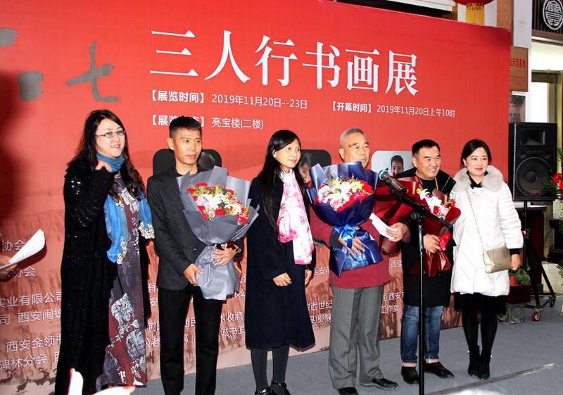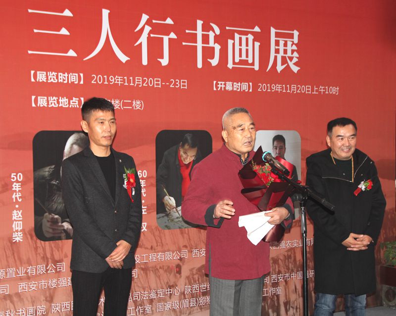 本网讯(赵刚)11月20日上午,由陕西省美术家协会、陕西于右任书法学会、西安市中国画研究会主办,西安市燕云房地产开发有限公司、陕西强农实业有限公司、西安楼强建设工程有限公司、陕西丰华建设有限公司、陕西闽锐玻璃有限公司、陕西省民间艺术收藏协会、陕西世纪传承拍卖有限公司等联合协办的“五·六·七——赵仰柴、左权、杜朝辉老中青三人书画作品展”在西安亮宝楼隆重开幕。