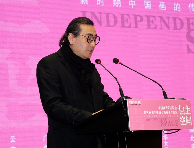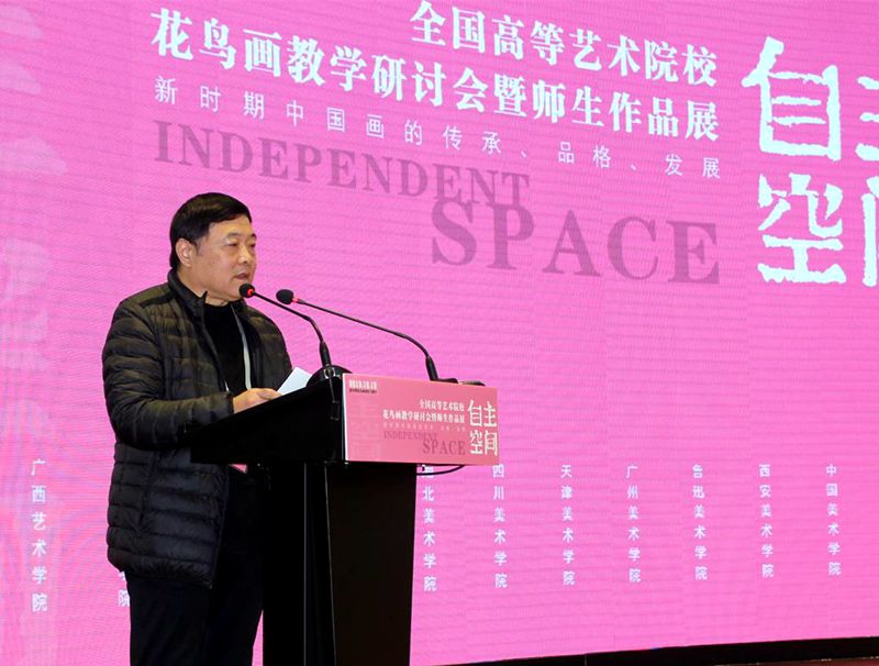 当日下午2点,在西安美术学院美术馆举办了学术研讨会,各院校的一线教师及学科带头人、著名专家学者就中国花鸟画艺术发展与教学问题进行了主旨发言与探讨。本次研讨会主题为“自主空间”,这也是继中央美术学院和中国美术学院花鸟画教学研讨会之后又一次针对当代中国花鸟画创作与教学的系列研讨活动。旨在打造具有学术性、前沿性的交流平台,推动各院校间的交流与学术进程。各院校代表以院校为主线,以开放性的思维,总结、展示了近年来在不同地域、不同风格、不同理念下所形成的全国高等艺术院校花鸟画教学的创作状态与最新成果。多角度、多层次的探讨了中国花鸟画教育教学改革新模式,以及如何构建当代中国花鸟画创作与教学多元化的格局,推动中国花鸟画艺术教育的长足发展。