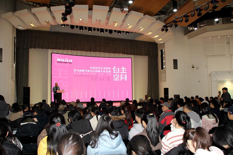 本网讯(赵刚)2019年12月12日上午10点,由西安美术学院主办,西安美术学院中国画学院承办的"自主空间·全国高等艺术院校花鸟画教学研讨会暨师生作品展"在西安美术学院美术馆隆重开幕。