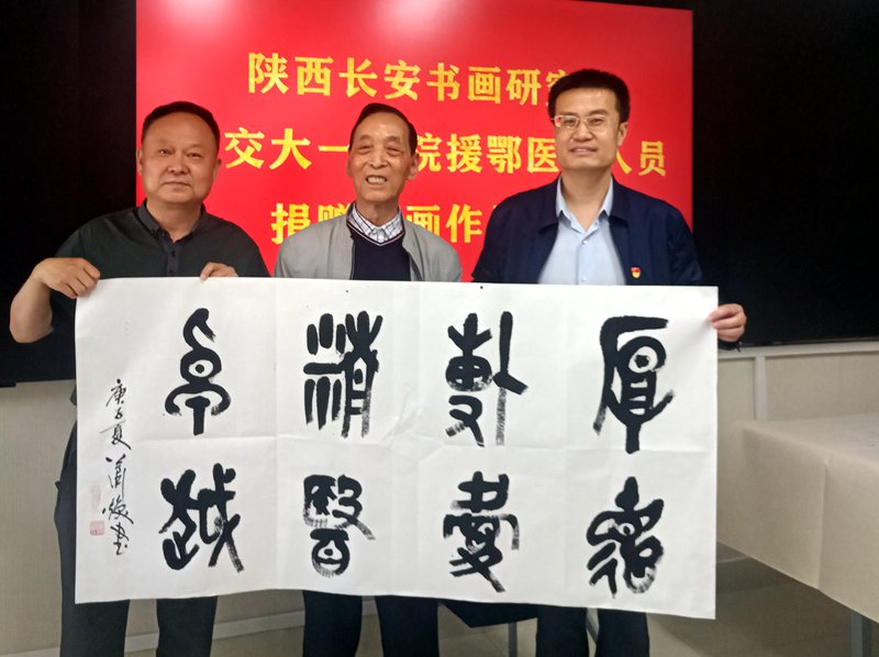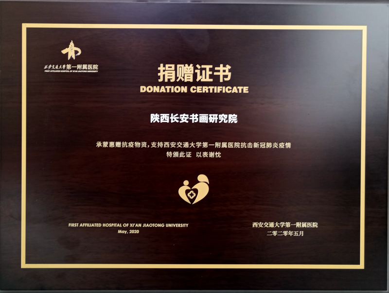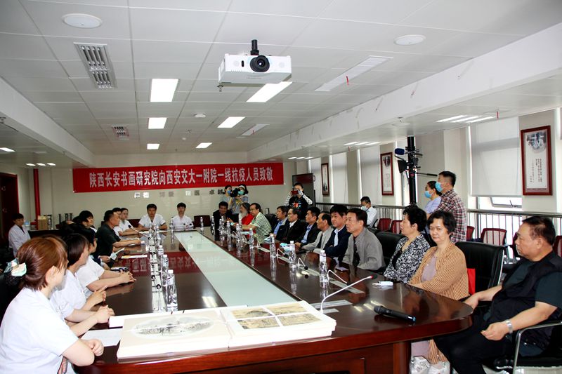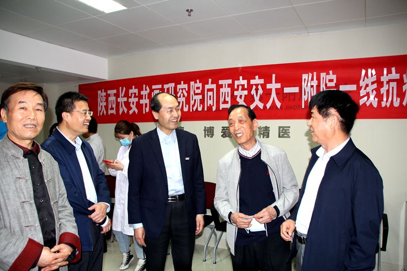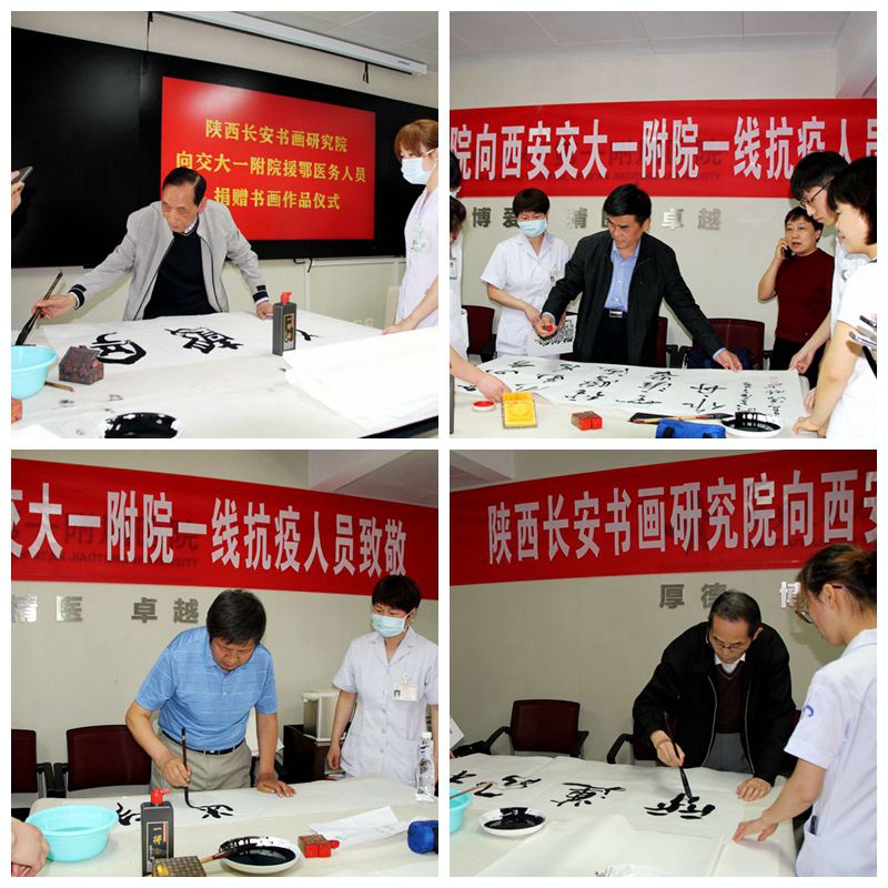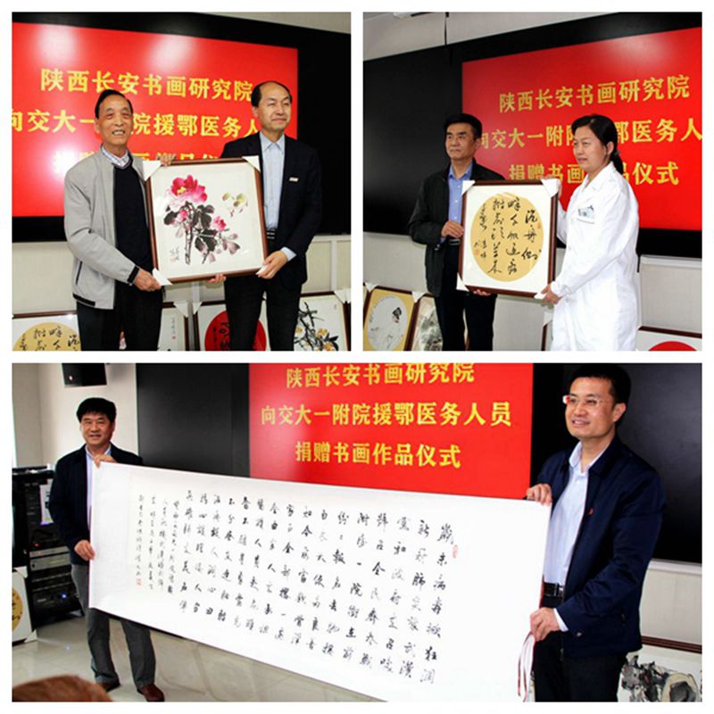 (本网讯)2020年5月15日,陕西长安书画研究院向西安交通大学第一附院援鄂医务人员捐赠书画作品仪式在西安交通大学第一附院举行。