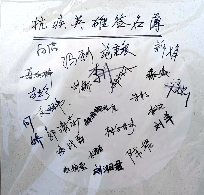捐赠仪式结束后,现场举行笔会,书画家们又挥笔泼墨,为一线抗疫医务人员书写了近百幅书法作品。萧焕院长现场书写的“厚德、博爱、精医、卓越”八个篆书大字,被交大一附院院史馆收藏。