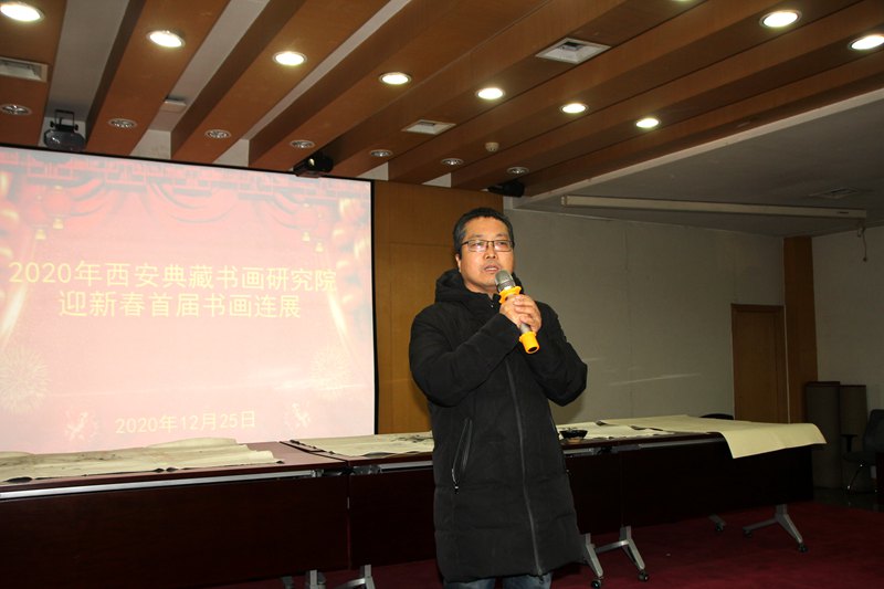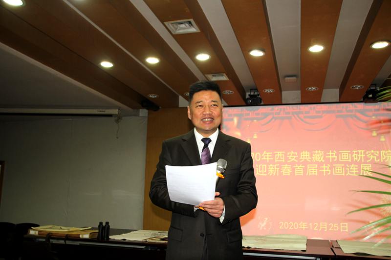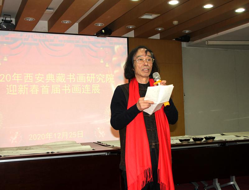 本网讯(赵刚)翰墨飘香,丹青溢彩。12月25日上午,在2021年元旦即将来临之际,西安市收藏协会典藏书画研究院首届迎元旦书画展在陕西省委党校学苑大厦一楼报告厅开幕。