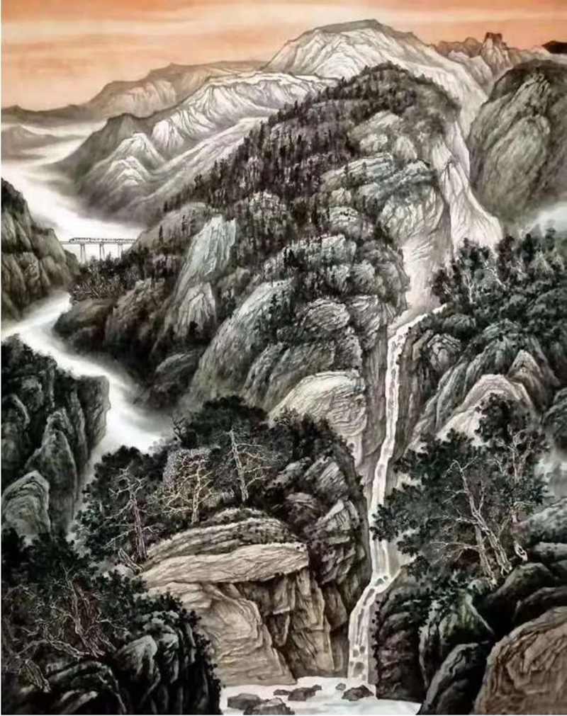 2019年十月作品幽壑斜阳参加陕西省庆祝中华人民共和国成立70周年作品展