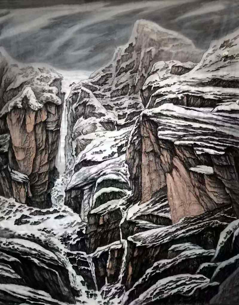 雷虎之画谙古意、抒今情,他深知中国绘画的传统精髓对于一个画家的重要。由此,不断深入传统、向古代大家求教是他的重要功课,这其间,有他从小临习古画的扎实基础,也有他在西安美术学院国画系求学的学院背景,还有他对范宽、石涛等先贤大家的持续研读与思考。有了这些,雷虎笔下的山水,有古意,有文气,有了来自久远年代的神秘气息。但最重要的是,雷虎解决好了师古而不泥古的问题,他用手中毛笔描绘当今山水,以笔墨当随时代的精神在宣纸上纵横驰骋。这使得雷虎用传统的笔意关照当今生活,表达自己对祖国山河的理解,这种理解是有高度和眼界的。