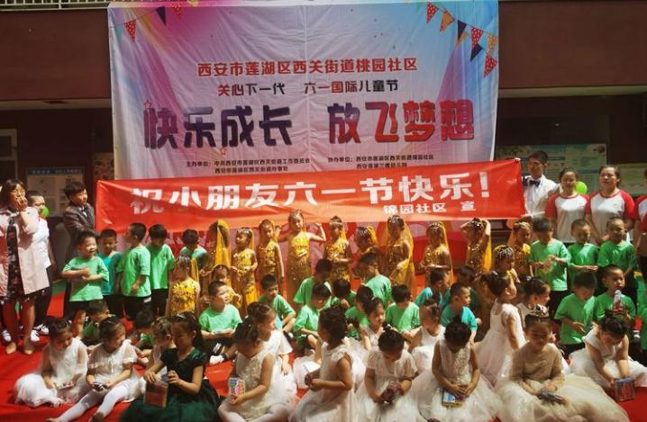 同时,祝愿孩子们“六一国际儿童节”快乐!最后西安市莲湖区西关街道锦园社区书记陈嫦和社区工作人员为孩子们送上水彩笔、跳绳等学习用品,祝愿孩子们“六一儿童节”快乐,鼓励孩子们努力学习,争做社会主义事业接班人!整台节目精彩绝伦、形式多样。
