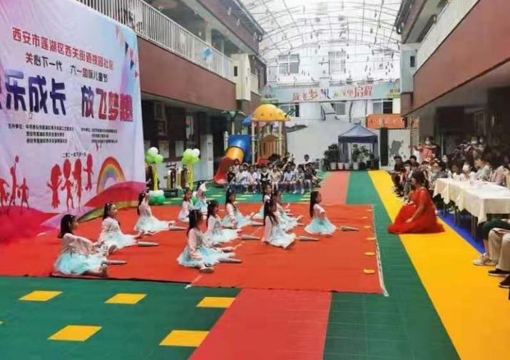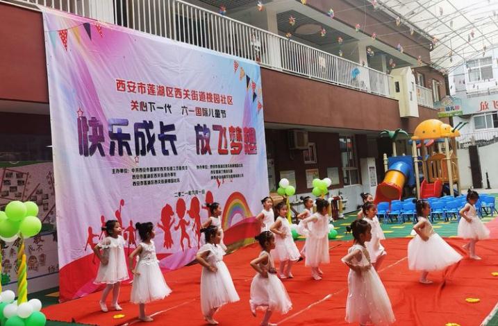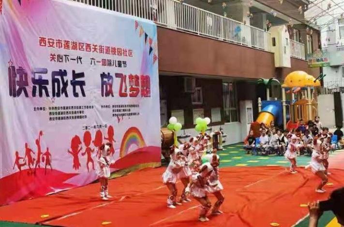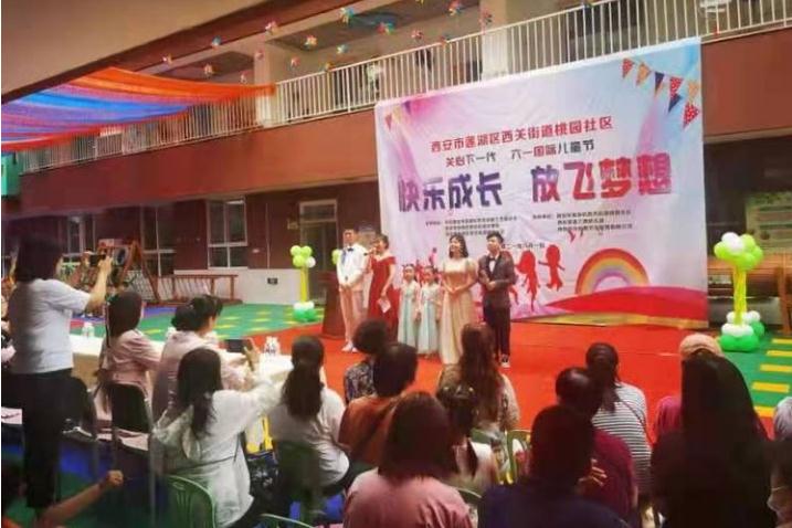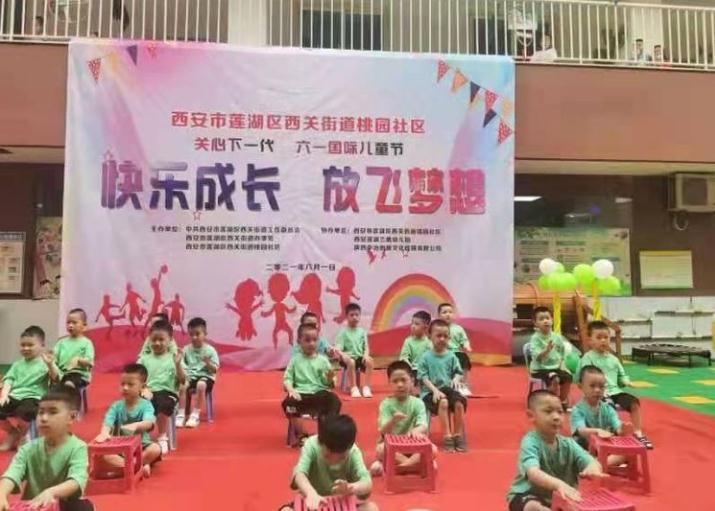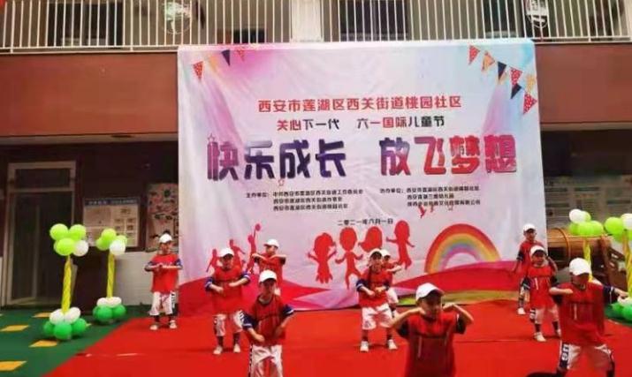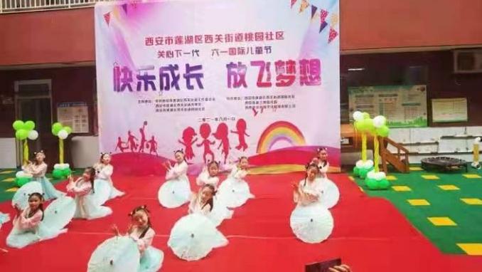 本网讯 (记者 昌龙利) 2021年6月1日上午,西安莲湖蓝鹰幼儿园的孩子们身穿节日的盛装和老师、家长们欢聚一堂,一起举办了主题为《快乐成长·放飞梦想》西安市莲湖区西关街道桃园社区关心下一代六一国际儿童节的文艺汇演活动。为了活跃辖区群众业余文化生活,加强社区、单位和儿童家庭的互动与联系,西安市莲湖区西关街道桃园社区通过开展庆祝“六一”活动,使幼儿在积极的参与中体验合作与交往的快乐,从而度过一个幸福、难忘的“六一”儿童节。