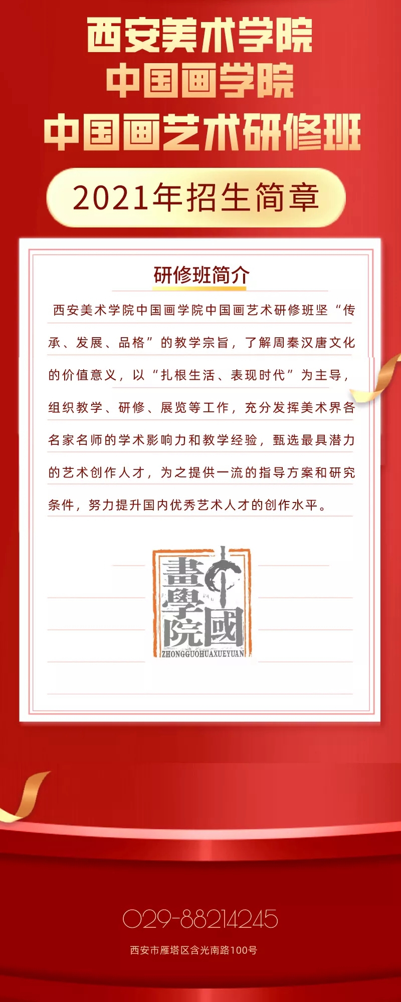 学习期满经考核合格者颁发西安美术学院中国画学院艺术研修班结业证书;举办结业创作展览;学习期内邀请名家名师授课、点评、穿插艺术理论课程及学术论坛活动;学习期内在微信公众平台发布优秀学员作品。