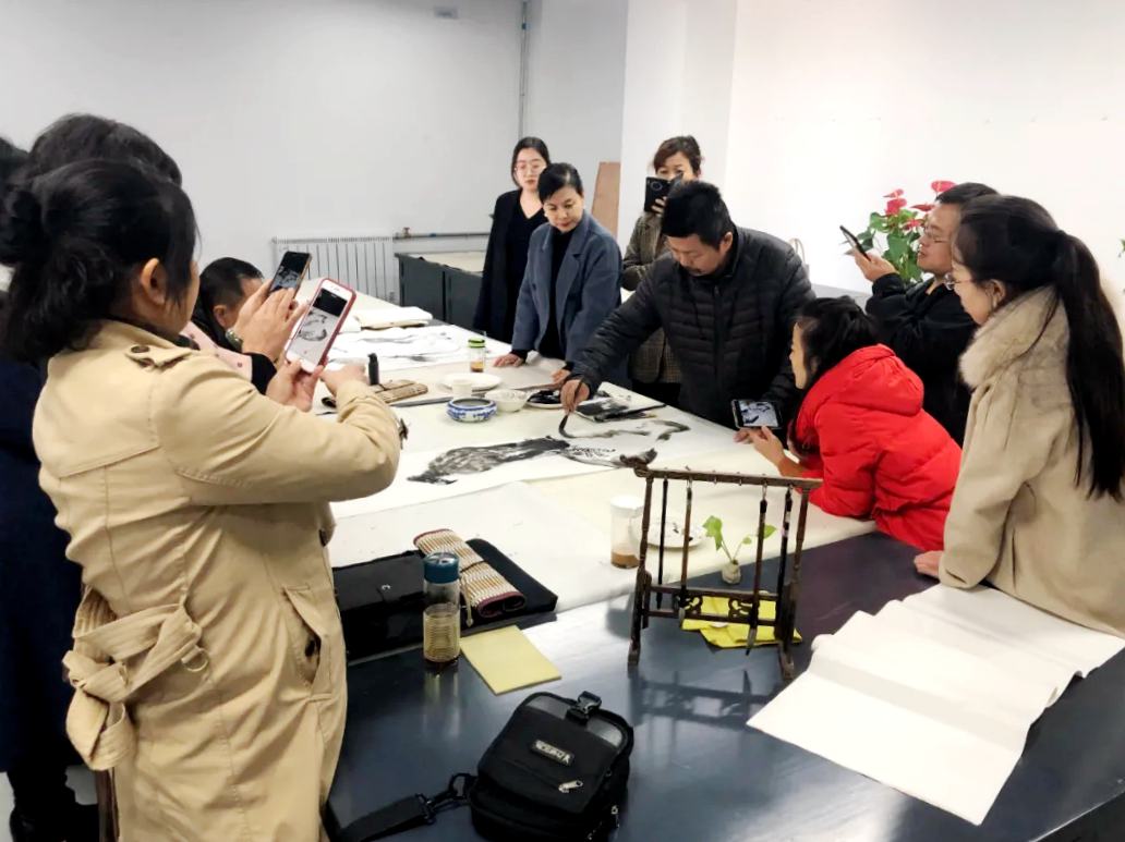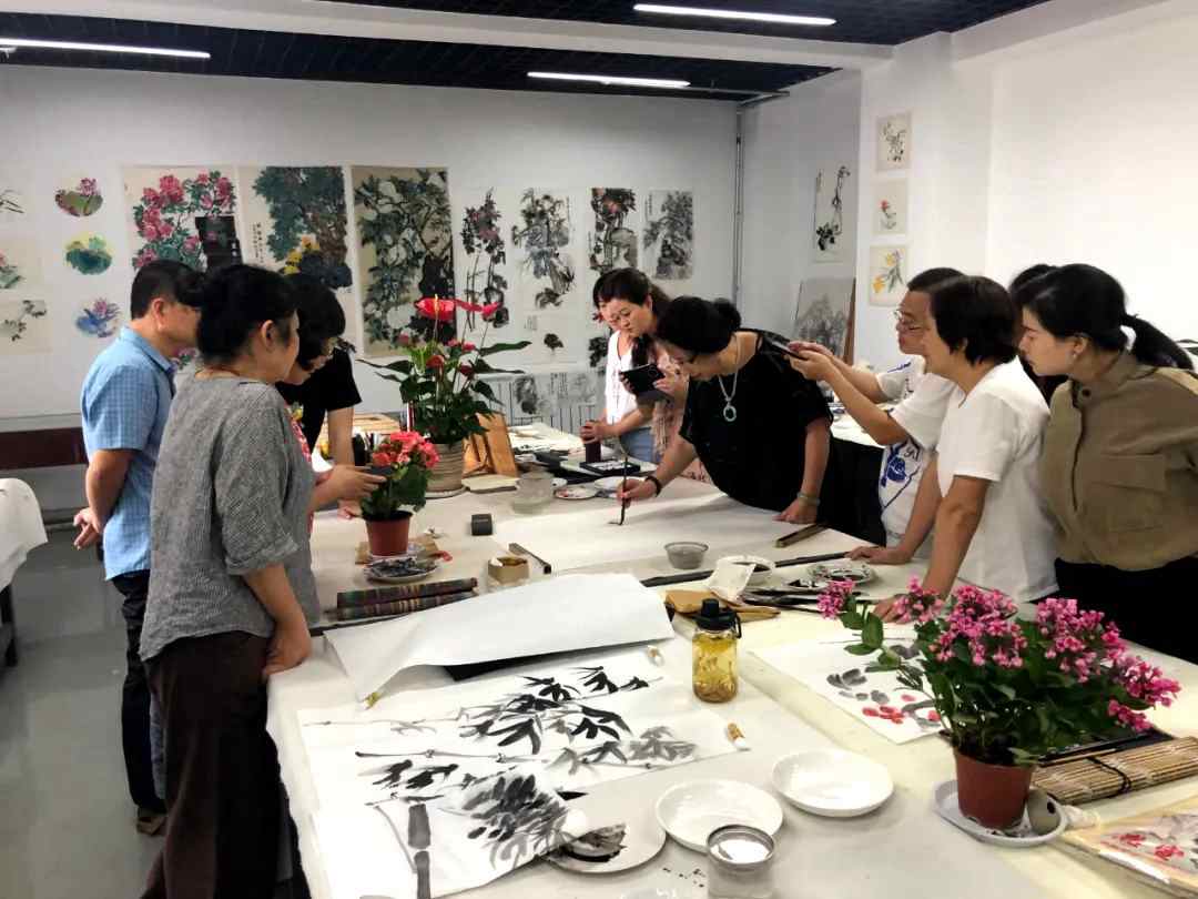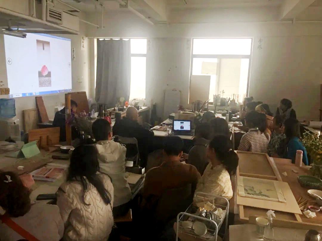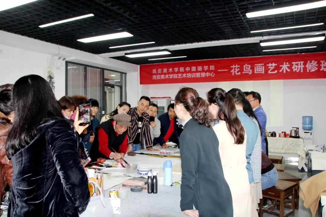 韩莉老师给大家讲解写意花鸟画构图技法、做课堂示范及讲解