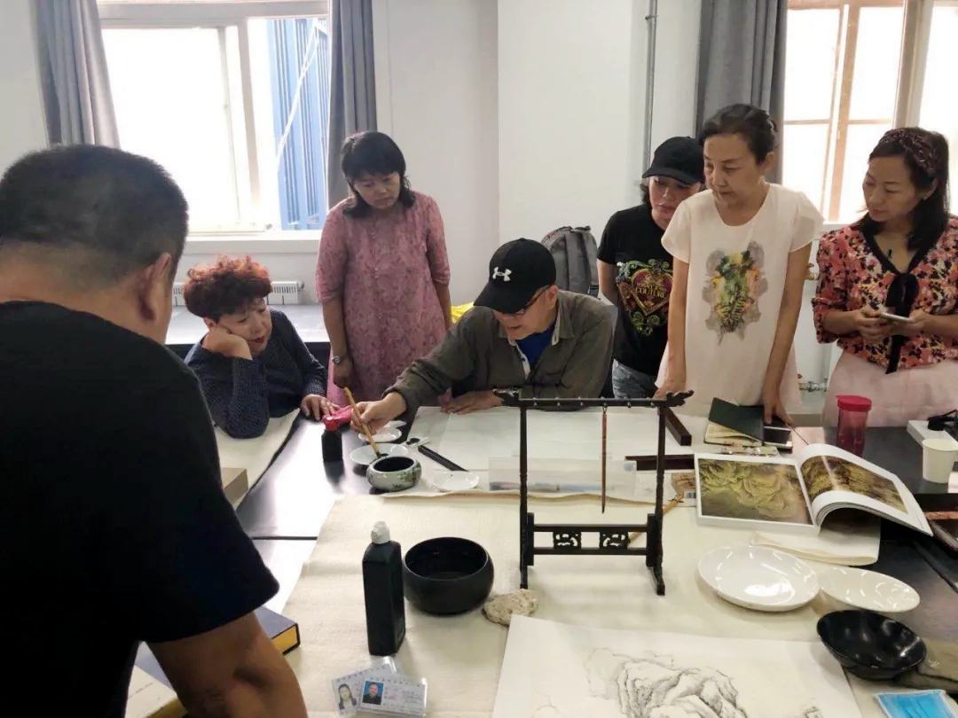 陈斌老师给花鸟研修班学员做课堂示范 为花鸟班学员书写堂号