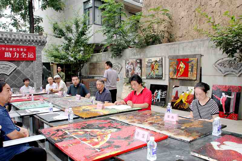 在活动现场,与会专家、嘉宾与大型主题漆画选题创作人员董明江、李军权、董伟英、吉玲、申卫东、李建军、王文续、肖云峰、梁昊昊、崔伟兵、李洋等进行了观摩互动。