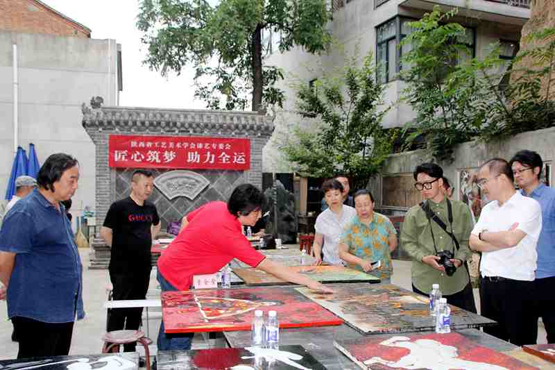 本网讯(赵刚)6月23日,由中国工艺美术学会指导,陕西省科学技术协会、陕西经济联合会支持,陕西省工艺美术学会主办,陕西省工艺美术学会漆艺专业委员会承办,陕工美学漆艺专业委员会“黎明漆艺园”创研团队、西安美术学院公共艺术系研究生漆艺创作团队、西北大学现代学院艺术设计学院漆艺创作团队、德经书画院创作团队、西安丝路研究院创作团队、“秦漆阁”创作团队等团队协办,西安美术学院公共艺术系,西北大学现代学院艺术设计学院作为学术支持单位的“2021 手艺·守艺 ——众心向党、自立自强”工艺美术科普教育周系列活动之“立德树人、匠心筑梦、以美为媒、助力全运”主题大型漆画创作活动在长安区“黎明漆艺园”举办。