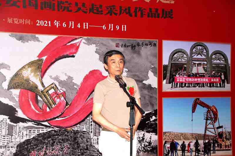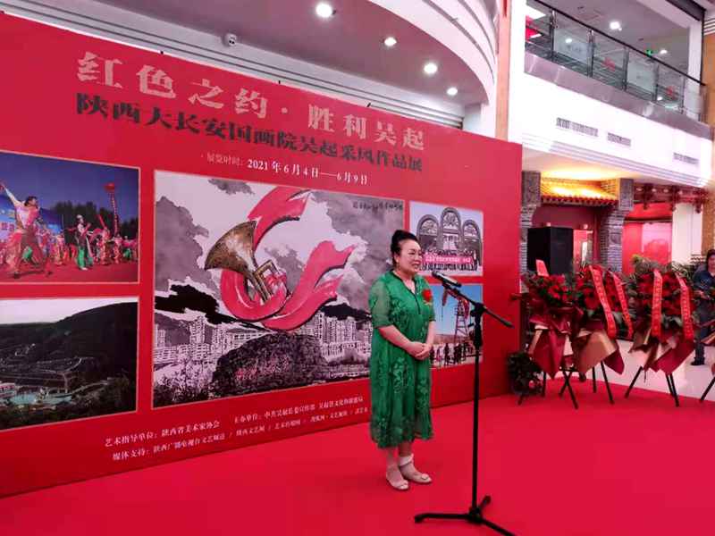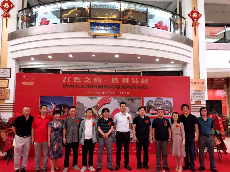 本网讯(赵刚)2021年6月4日,在举国上下庆祝中国共产党成立100周年的重要历史时刻,“红色之约·胜利吴起——陕西大长安国画院吴起采风作品展”在西安亮宝楼隆重开幕。本次展览由中共吴起县委宣传部、吴起县文化和旅游局主办,陕西大长安国画院承办,陕西省美术家协会指导。