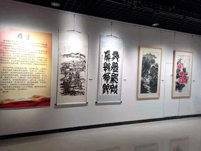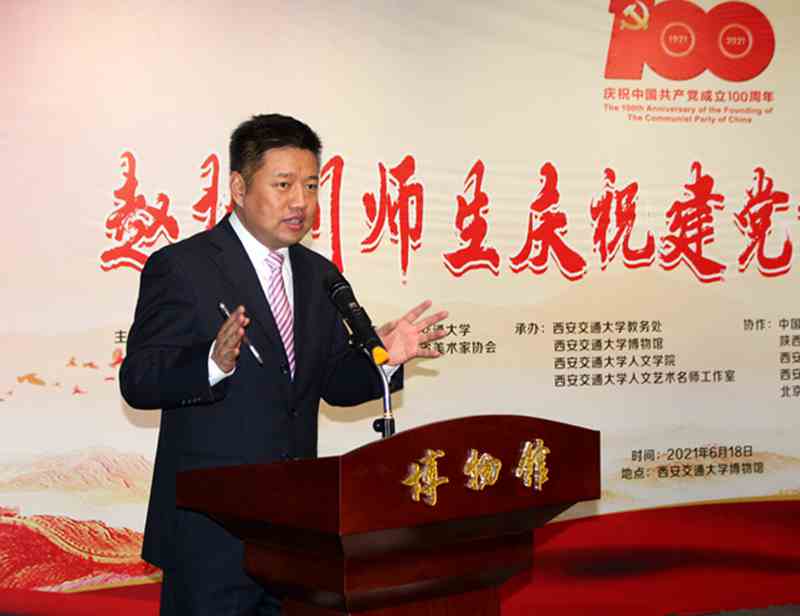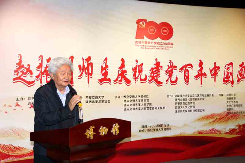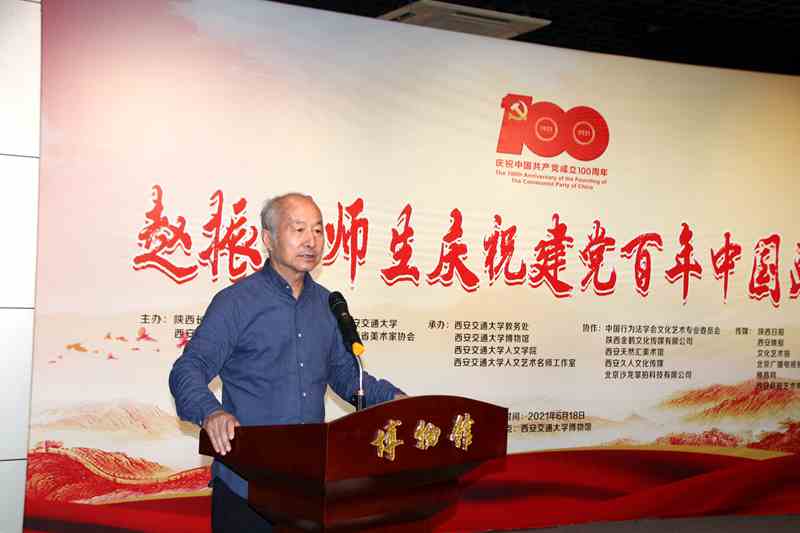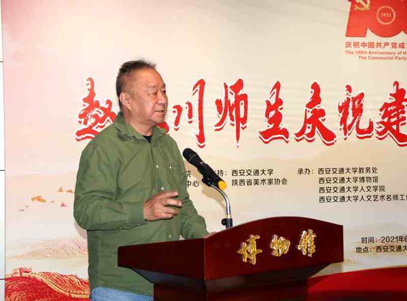 本网讯(赵刚)2021年6月18日,由陕西长安画派艺术研究院、西安交通大学艺术教育中心主办,西安交通大学、陕西省美术家协会支持,西安交通大学教务处、西安交通大学人文学院、西安交通大学博物馆、西安交通大学人文艺术名师工作室等单位承办的“赵振川师生庆祝建党百年中国画展”在西安交通大学博物馆隆重开幕。