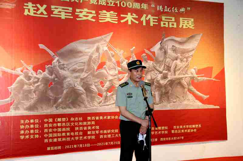 本网讯(赵刚)7月18日,庆祝中国共产党成立100周年——“铸就经典”赵军安美术作品展在陕西省美术馆开幕。该展览由中国《雕塑》杂志社、陕西省美术家协会、云海画院主办,西安市鄠邑区文化和旅游局承办,西安中国画院、陕西省美术馆协办。