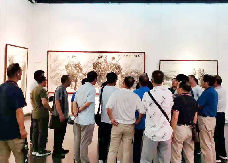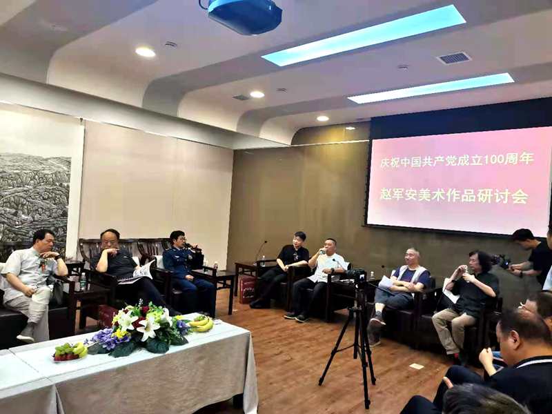 开幕式后举办了学术研讨会。与会美术界嘉宾对赵军安老师多年来坚持红色主题创作的精神品质,及其雕塑与国画的艺术特色给予高度评价和诚恳建议,同时大家就“红色题材美术创作中的经典传承与时代创新”“军旅题材雕塑与城市建设的规划设计与融合”等议题进行了广泛而深入的探讨,研讨会现场气氛热烈,也成为美术界学总书记“七一”重要讲话精神的一次生动课堂。