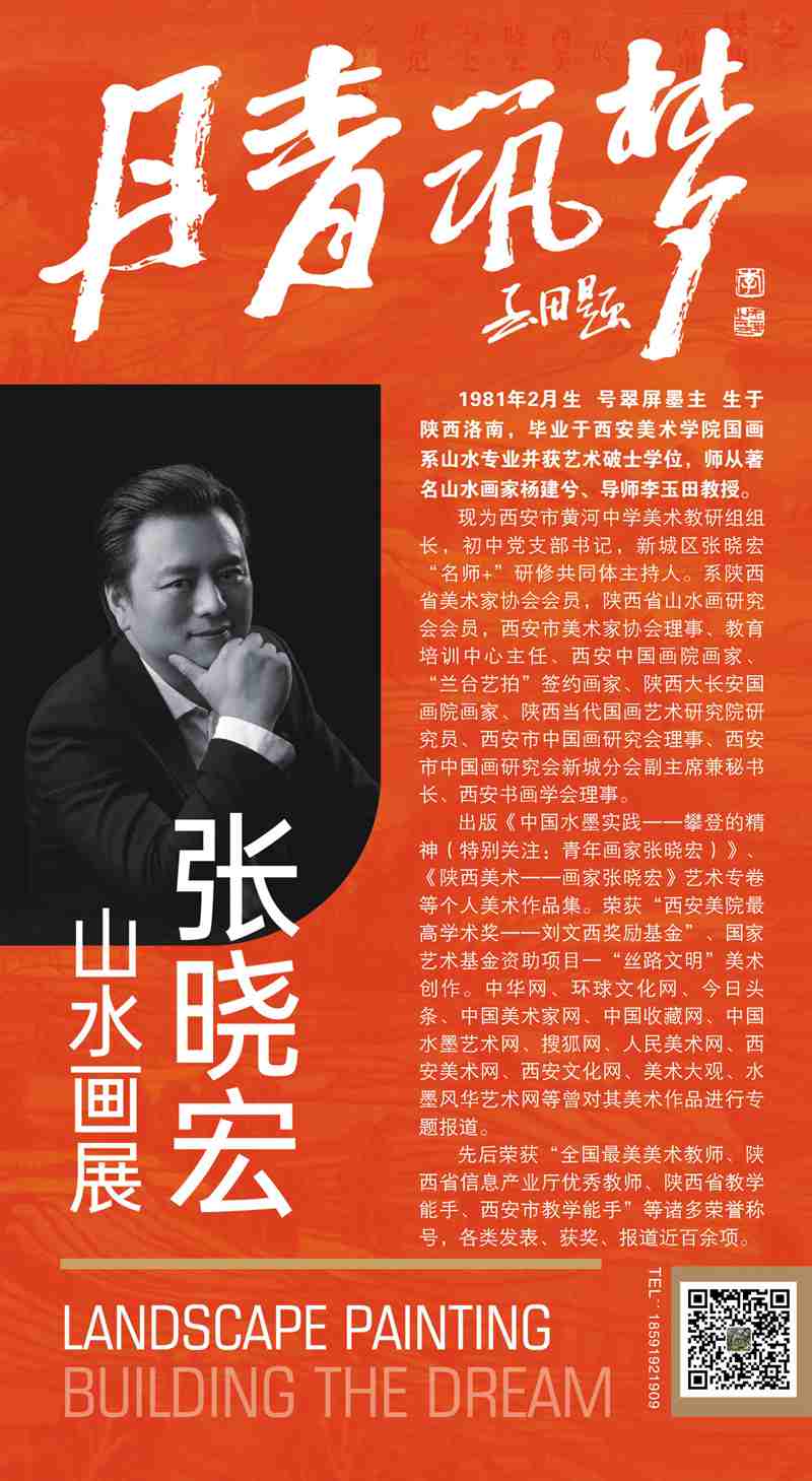 奋勇前行在新时代的康庄大道上,张晓宏将矢志不渝地求真求善求美,锐意立言立信立德,立志用画笔唱响时代主旋律,丹青筑梦——以博大的教育情怀与艺术情愫抒写旷达人生。言为心声,画为心象。以虔诚之心展出的这些山水拙作,更渴望得到老师、同道以及各界朋友们的批评指正。