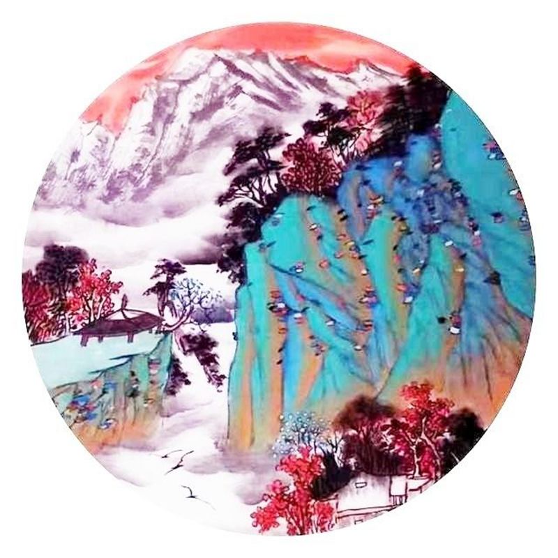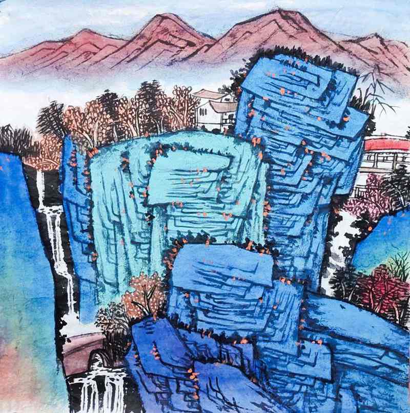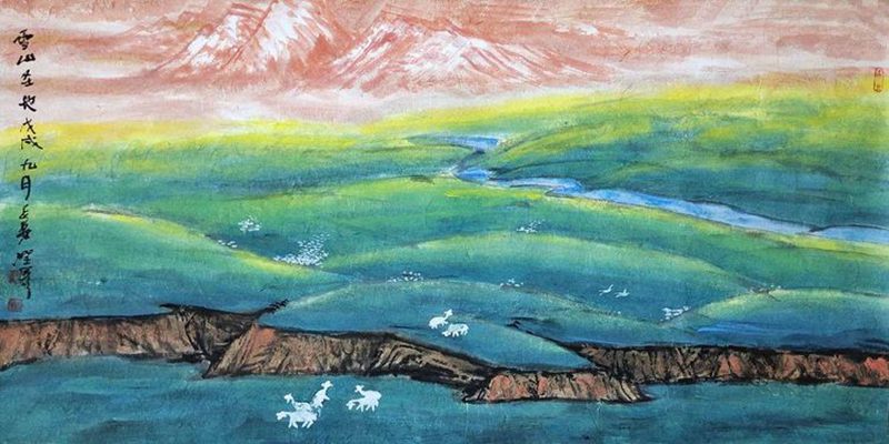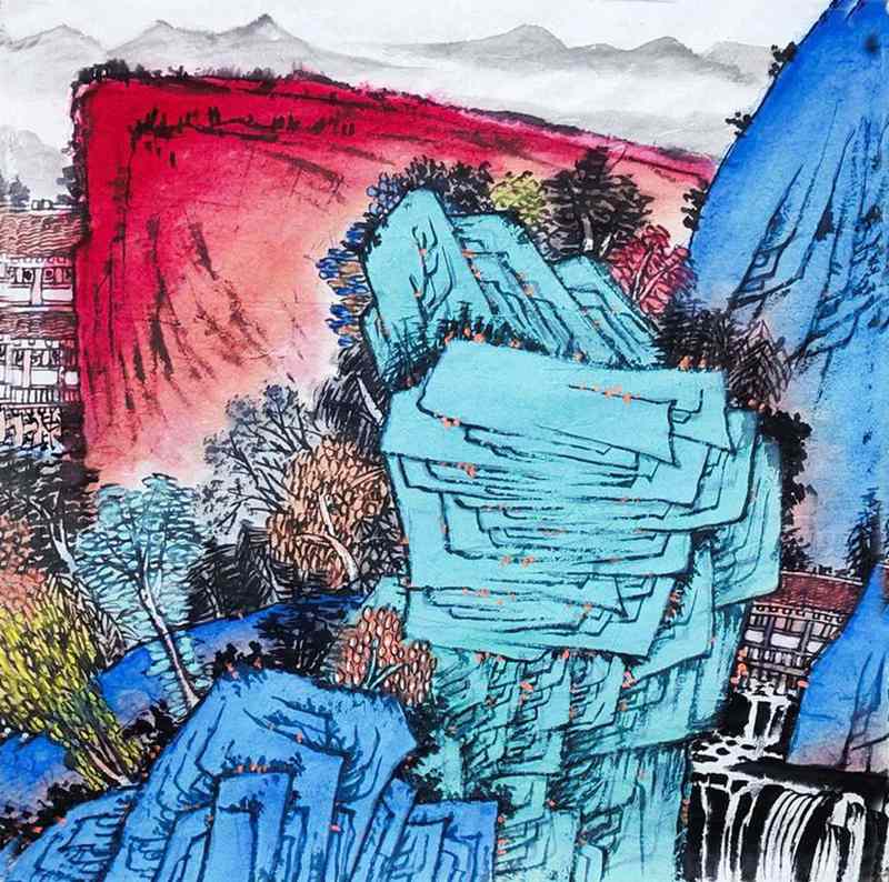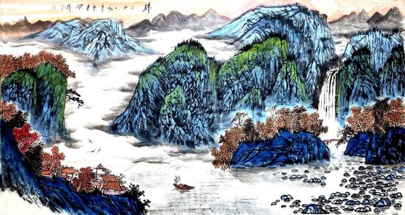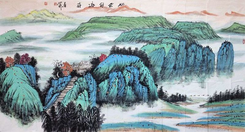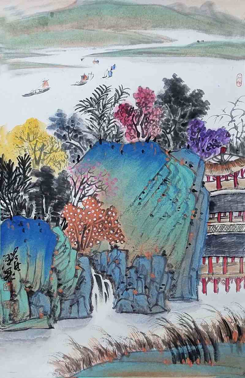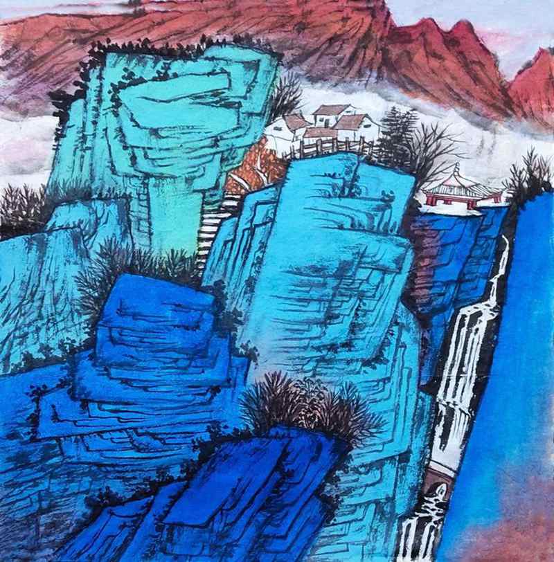 中国画运用重彩始于唐宋,现代美术教育又对日本岩彩绘画(日本画)进行导入,使重彩绘画跨越时代而至今犹存。写意重彩画的近代虽有海派和岭南画派称雄,又有张大千,何海霞等大家的努力,以及现今活跃于中国画坛的诸位艺术家的大力推广,但如果只谈重彩写意山水,那么连润升的山水画可谓独树一帜。