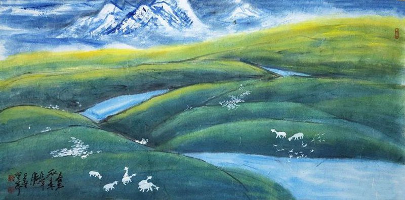 毕业后受长安画派的影响,将山水画的“三远”通过色彩的薄厚、冷暖加以表现而画面色彩经过多次渲染,化物象为情绪,化心象为意境,使得色彩有了“深呼吸”,从而让重彩绘画跨越时代,使作品具有博大之美,雄奇之美,朴茂之美和籁之美,给人以强烈视觉冲击力和心灵的震撼。