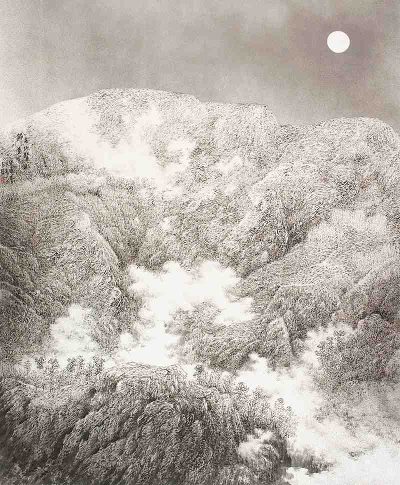 李玉田在攻读西安美院山水专业研究生之前,在美术专业的深造和研修上奠定了一定的基础,尤其在生活实践和艺术实践两个方面,已取得了不错的成绩,并不断有作品获奖。由于他对艺术的追求虔诚刻苦。功夫不负有心人,1998年终于如愿以偿考入西安美术学院,成为山水画家戴希斌先生的研究生,2001年毕业获硕士学位。说来也巧,由于我懈逅他在研究生画展中,加之其给我较深印象,我曾建议院里能把该生留下,事与愿随,他留下当了一名教师,又住在我家后面楼上,我们交往越来越多,自然感情越来越深。深为其每年雷打不动地下乡,深入巴山、秦岭,黄土高原每日长达十多个小时的写生而感动,反复的深入生活,不断的临摹传统,使他的作品长进很大。由为创作了不少的巨幅作品,像《家山万象里梦依稀》这幅作品构图上吸收了西方风景画之构图方式,散点透视和焦点透视并用,使之更加贴近现实生活,并富时代气息,我总觉得他的画以密集的米点皴和钉头皴塑造黄土高原很是切且,黄土是山水画里较难表现的,因为它不象石头,有棱有角,结构分明,变化十分微妙,直接和画石头的办法,以线表现,会失去黄土高原结构变化的特点及土质结构松软的质感,我觉得他画的黄土高原所用的皴法,是找对了路子。