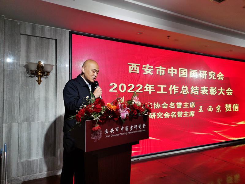 西安市中国画研究会副主席 丁捷 宣读王西京主席贺信