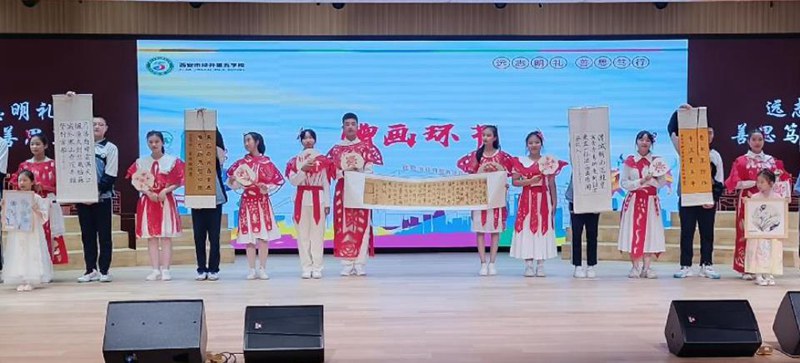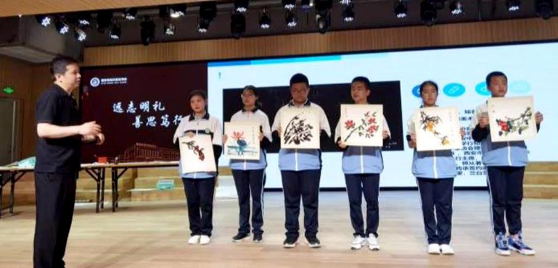 学生们展示书画作品