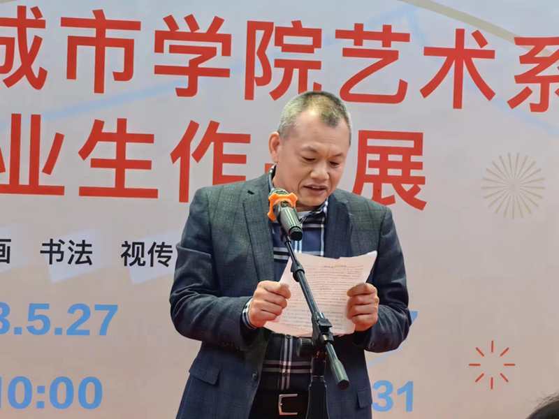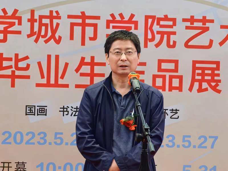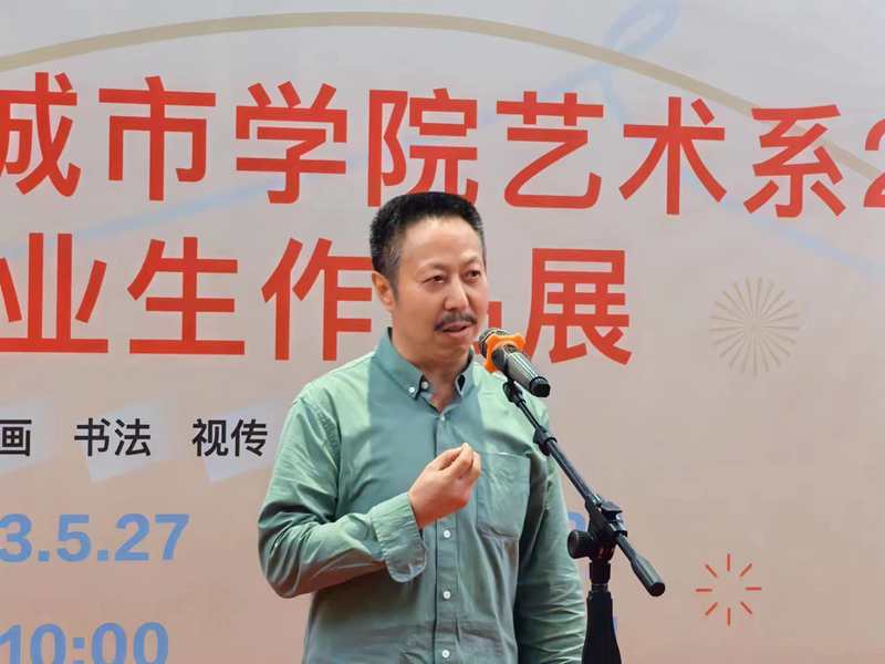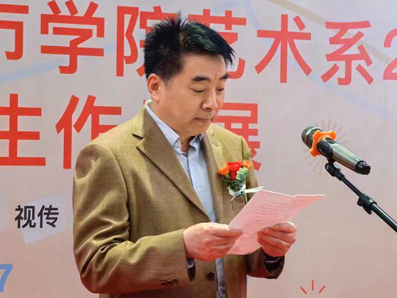 开幕式的最后,西安交通大学城市学院艺术系主任解安宁教授致感谢词,表达了对社会各界对于城市学院艺术系一直以来各项工作的支持与感谢,并表示在当下这个多变的时代,科技进步、学科融合的大背景下,毕业生们的作品应进一步融合科学精神与人文情怀,精进专业技能,提高专业水平,为大二、大三的学弟学妹们做好榜样。他还希望艺术系越办越好,为国家培养出更多具有文化传承使命感和扎实的专业技能、教育实践能力的艺术人才。