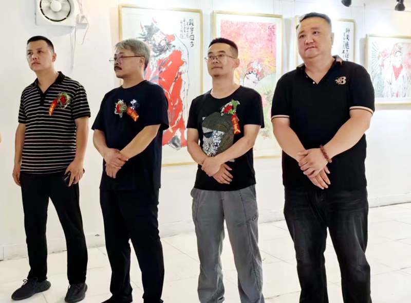 参展画家、麻正、雷虎、冯国和策展人赵文宇