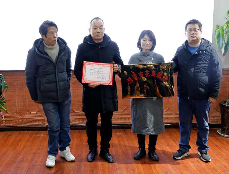 西安市花鸟画院院长赵瑞安为张小伟颁发西安市花鸟画院临潼文化艺术交流中心主任任命证书,同时为“西安市花鸟画院临潼文化艺术交流中心”揭牌
