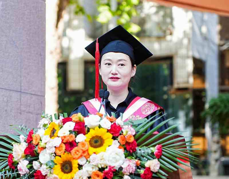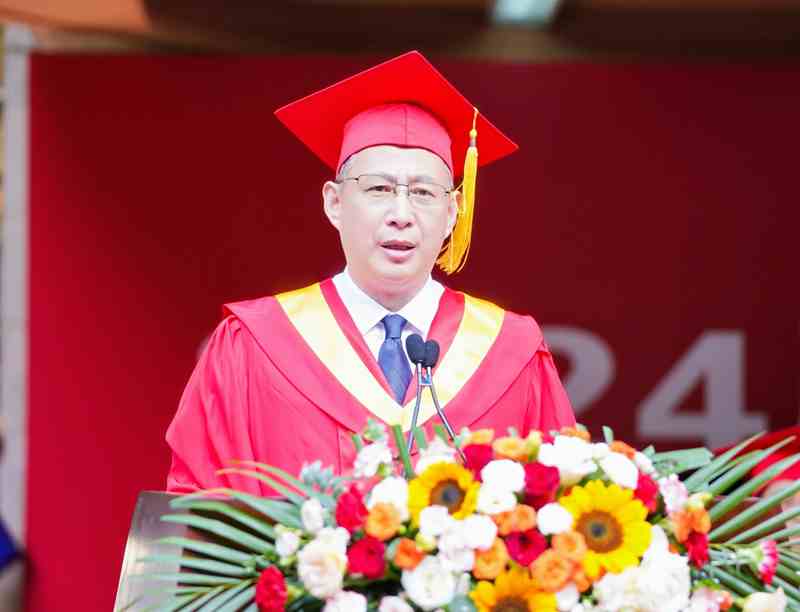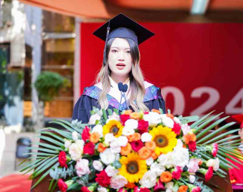2024届本科毕业生代表李艾宣在发言中回顾了在校期间的中外学习经历,她表示在踏上人生新的征途中,会保持文化自信,向世界传递中华文化、讲好中国故事。