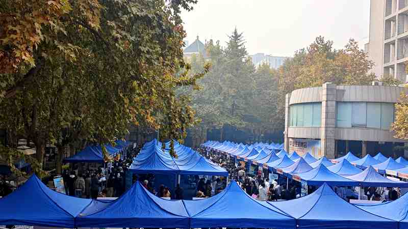 招聘会上还设置考公考编、就业政策、简历指导、应征入伍等咨询服务区,为学生就业保驾护航。此外,为鼓励学生创新创业,学院设置创艺市集专区,共设有近百个摊位,创意产品涵盖多个领域,有陶艺制作、非遗大漆、原创饰品等几十种产品。