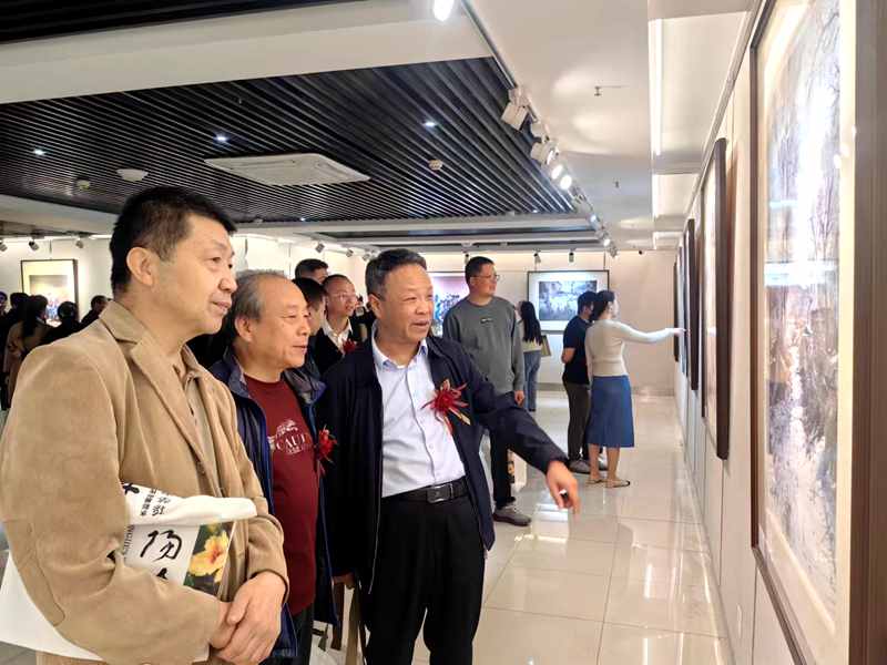 咸阳市文联副主席赵冲,咸阳市教育局副局长陈复职,咸阳市文化和旅游局艺术科科长杨峰,中国美术家协会水彩艺委会委员,西安美院教授史涛,宝鸡文理学院美术学院院长,教授李强,咸阳师范学院于右任书法学院党委书记计谋远,西安美术学院教授刘时燕,西安工程大学教授曾军梅,咸阳师范学院美术学院教授谢军,咸阳师范学院美术学院副教授朱晓娟,咸阳市美术家协会名誉主席成中艾,陕西省花鸟协会副主席岳晖,咸阳市美术家协会副主席王瑞,陕西省山水画研究会副主席、咸阳市山水画研究会主席季子泉,咸阳市美协副主席、咸阳西画研究会主席郝一甲,咸阳市美术家协会副主席梁勃,陕西现代刻字研究会副会长张勋,咸阳市书法家协会副主席吕伟涛,咸阳市妇女书画协会主席李萧立、副主席范英琪,西安中国画研究会副主任、著名山水画家赵平,陕西眉县猕猴桃酒店董事长周明君,著名水彩画家赵丽、黎玲、著名书法家任波涛、著名山水画家孙宗林,咸阳西画研究会名誉会长门亚军、副会长顾东升、归宝军、桂亚明、副秘书长赵勃,秦都区作家协会主席辛建斌,秦都区秦文化研究会副主席、书法家常世民, 陕西网咸阳站站长王保训,秦都区政府总督学曹振飞,秦都区古渡镇教育组组长吕应社,咸阳市渭城区职业教育中心校长张晓战,咸阳市未来职业学校校长王忠博,秦都区马庄中学校长苟龙涛,秦都区双照中学校长赵刚,秦都区方圆学校校长李幼民,秦都中学校长巨立博,秦都区文华学校校长解飞,秦都区金山学校校长张宏民,秦都区电建学校校长张俊峰,古渡中心小学校长董美莹,秦都区职业教育中心党总支副书记王君霞,秦都区职业教育中心副校长君小斌、宋玉、工会主席沙丽,陕西省政府督学、秦都区职业教育中心校长助理陈振峰,秦都区职业教育中心艺术系主任程展望等领导、嘉宾、新闻媒体百余人出席开幕式。