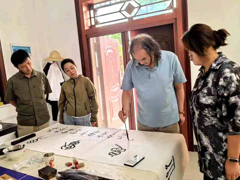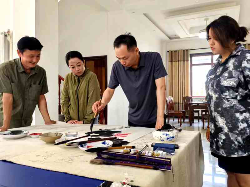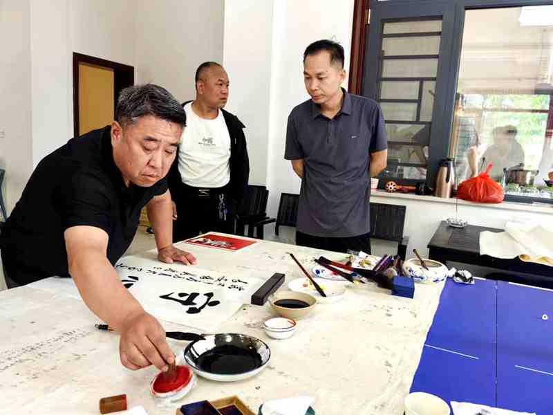 6月30日,艺术家们来到阎良区关山镇文化馆,听阎良区作家协会冉学东主席介绍关山镇的历史文化与现代化建设成就,艺术家们纷纷为关山镇独特的人文风情所折服,一时间热情迸发,以庆祝建党103周年、以乡村振兴、美丽乡村建设为主题,创作了一幅幅生动隽永的书画作品,关山镇的儿女在芬芳的笔墨之香中感受着中国传统书画的魅力与博大精深。