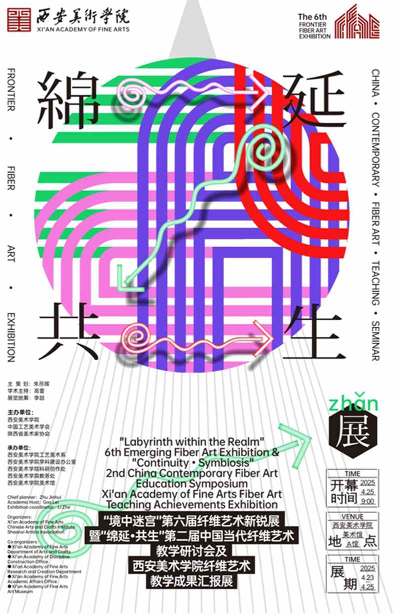 (本网讯)2025年4月25日上午,“境中迷宫”第六届纤维艺术新锐展暨“绵延?共生”第二届中国当代纤维艺术教学研讨会及西安美术学院纤维艺术教学成果汇报展在西安美术学院(雁塔校区)美术馆隆重启幕。本次活动由西安美术学院、中国工艺美术学会、陕西省美术家协会联合主办;西安美术学院工艺美术系、西安美术学院科研创作处、西安美术学院美术馆、西安美术学院学科建设办公室、西安美术学院教务处承办;中国工艺美术学会纤维艺术与设计专业委员会、中国美术学院等全国21所高校协办。作为国内纤维艺术领域的重要学术盛会,活动旨在以艺术实践与学术对话的双轨并进机制,为中国当代纤维艺术教育提供兼具在地性与前瞻性的学术参照。