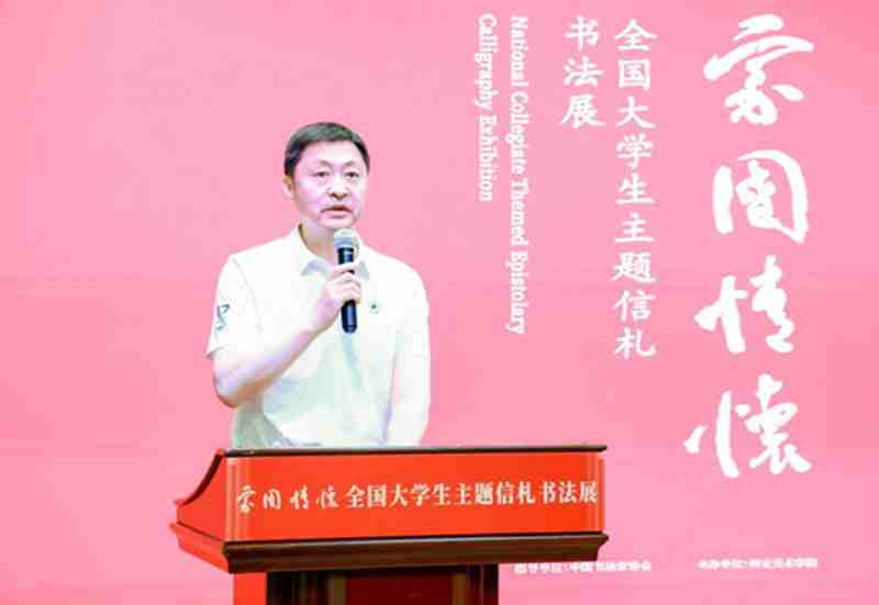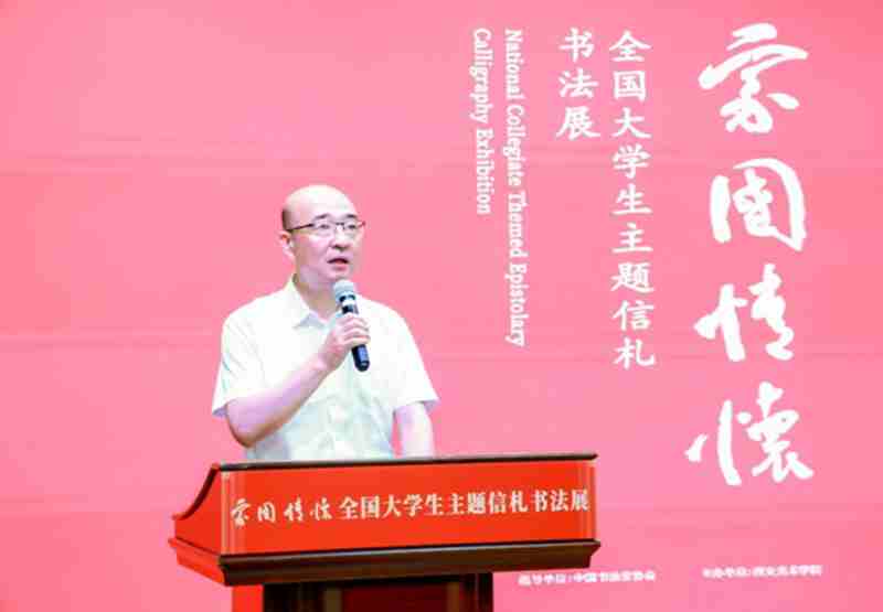 朱尽晖在致辞中讲到,书法艺术是中华文明独特的文化标识和精神载体,是美育浸润心灵、培根铸魂的宝贵资源。本次以“家国情怀”为主题的信札书法展,正是践行“以美育人、以美化人、以美培元”育人理念的重要实践。
