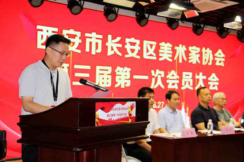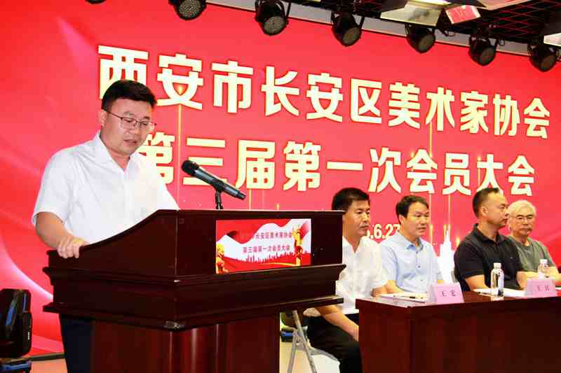 (本网讯)6 月 27 日上午,西安市长安区美术家协会第三届第一次会员大会在长安文化中心隆重举行,会议通过民主程序完成换届选举,刘刚当选为第三届主席团主席。西安美术学院教授萧焕、刘永杰,西安市文联协会部主任赵建鹏,西安书学院院长王江,西安市美协副主席冯晓伟,长安区委宣传部副部长刘勇,长安区民政局副局长高亚慧,长安区文联党组书记、主席王宏,西安美术家协会顾问骆孝敏,长安中国画院院长马良,长安作家协会主席张军峰,长安区书法家协会主席王秋惠,长安区音乐家协会主席薛瑞花,长安区摄影家协会副主席王胜利,西安市文联四级调研员吴琨等出席会议。大会由长安区美术家协会秘书长赵刚主持。