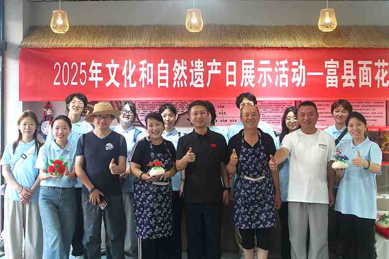 富县作为古鄜州所在地,非遗资源丰富,拥有省级非遗项目7项,市级非遗项目8项,县级非遗项目85项。实践团首站来到富县文化馆,在泛黄的文献与实物展品中,系统了解当地非遗传承谱系。在张红英面花传习所,国家级非遗传承人张红英现场演示面花制作,实践队员围坐学习,指尖沾满面粉,也接过了这份“面里乾坤”的传承密码。