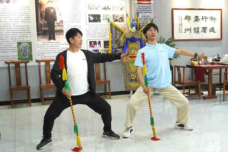 从黄河陶艺馆的泥土芬芳,到秦腔传习所的高亢激昂,再到熏画传习所的烟墨留香,非遗的多元形态让实践队员沉醉。在黄河陶艺馆,传承人王志刚手把手教授黑陶拉坯技艺,实践队员白芸馨说:“当泥土在旋转中成型,仿佛触摸到了黄河流域先民的生活温度。”而在秦腔传习所,传承人为实践团唱起了《十二把镰刀》,让队员感受到“一声吼破千古月”的艺术张力。霸王鞭传承人现场指导实践队员挥鞭,在清脆悦耳的鞭铃声中,实践团深刻领悟了这门非遗艺术的魅力所在。