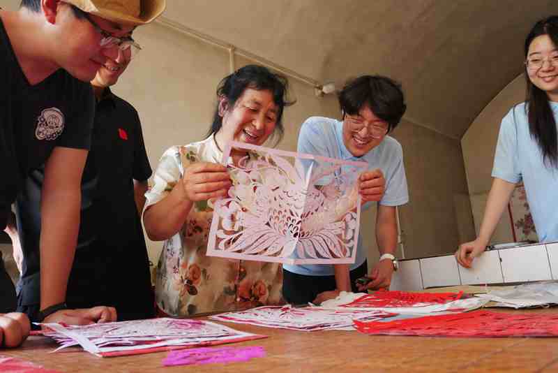 在黄土高原的深处,剪刀与红纸的碰撞声穿越百年。实践团来到富县乡村挖掘非遗故事,领略剪纸魅力,在南道徳丁家垣村刘淑芳奶奶家实践团感受到了这位七旬老人对剪纸的执着与热爱,在枣林子村的霍亚芹奶奶说:“这剪纸啊,剪的是故事,藏的是念想。”一幅幅剪纸作品串联起陕北民俗的鲜活图景,传递着黄土高原上生生不息的文化基因。带着充满乡土气息的剪纸作品,实践团来到富县广场,一幅幅剪纸作品整齐陈列,市民纷纷驻足观看。在实践队员的邀请下,市民手握剪刀在红纸上认真雕琢。实践团一场场剪纸展览、体验活动让非遗“落地生根”,为剪纸传承注入活力,让非遗文化真正走进寻常百姓家。