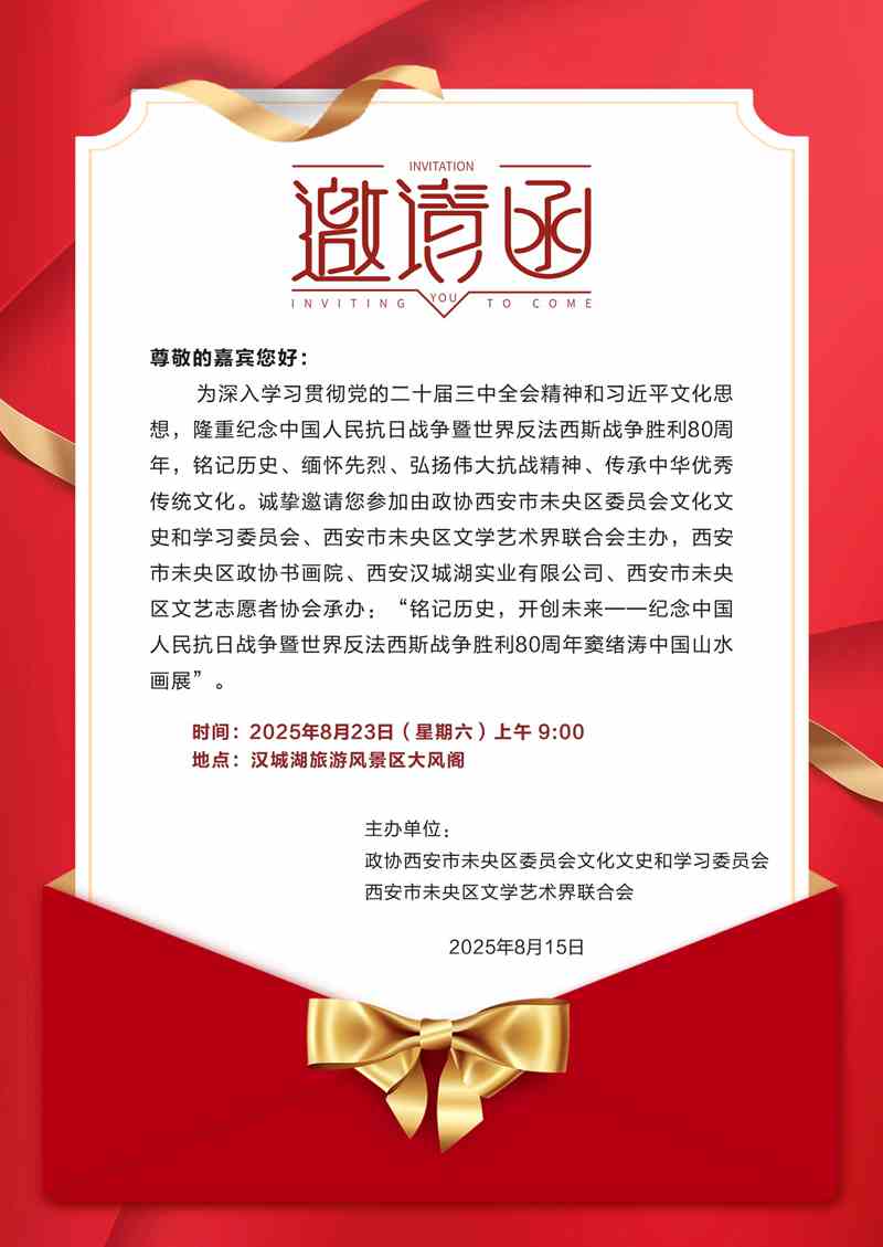 本文摘要:展 览 名 称 名记历史,开创未来 纪念中国人民抗日战争暨反法西斯战争胜利80周年窦绪涛山水画展主办单位政协西安市未央区委员会文化文史和学习委员会西安市未央区文学艺术界联合会承办单位西安